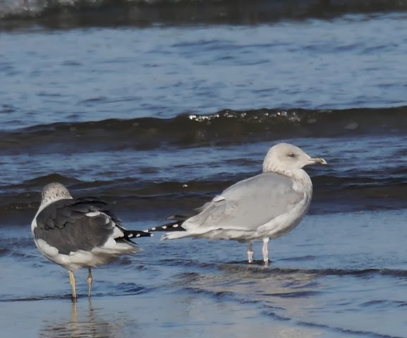Podemos comparar todas las anteriores con este imponente ejemplar de gaviota patiamarilla, que dado su tamaño podría ser mediterránea. Las diferencias son obvias, si atendemos a las coberteras y terciarias.
